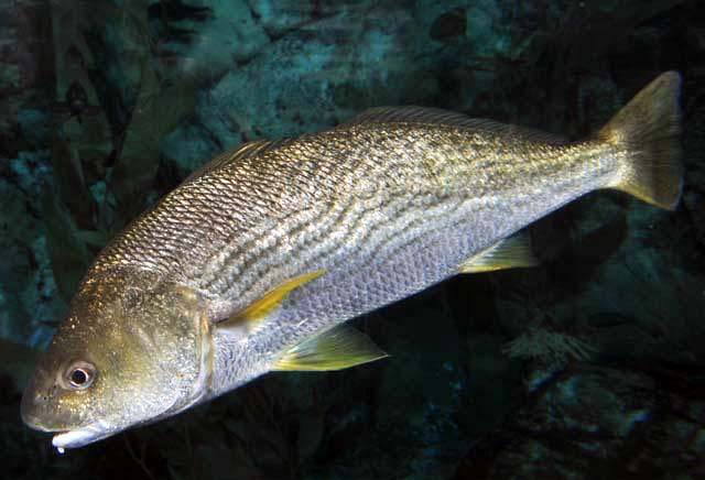 The Yellowfin Croaker is a species of fish found in the coastal waters of the eastern Pacific Ocean, and is an important commercial species, and its meat is highly sought after for its mild flavor and firm texture, yellowish-brown coloration with dark spots on its sides, and it can reach up to 24 inches in length. It feeds on small crustaceans, worms, mollusks, and other small fish. Its spawning season occurs from April to October when large schools form near shorelines along the coast of California. The Yellowfin Croaker is an important part of recreational fishing due to its abundance and willingness to take bait or lures. It also provides an important source of food for larger predators such as sharks or seals that feed on them during their migration periods.